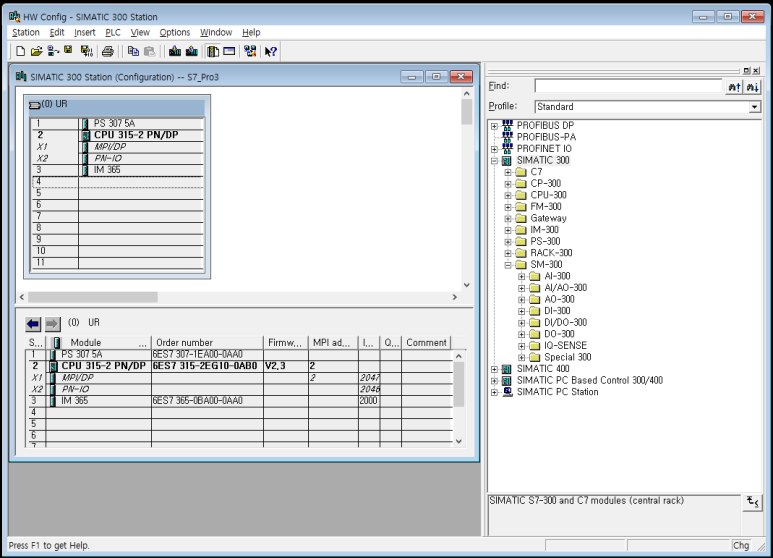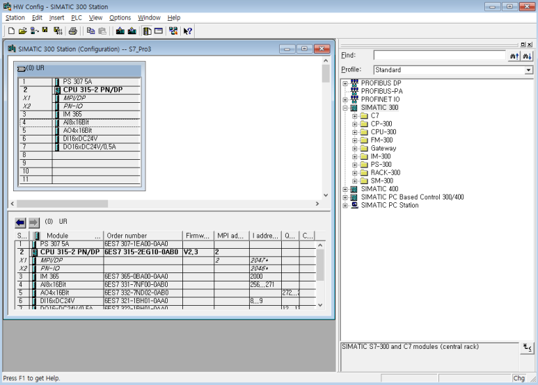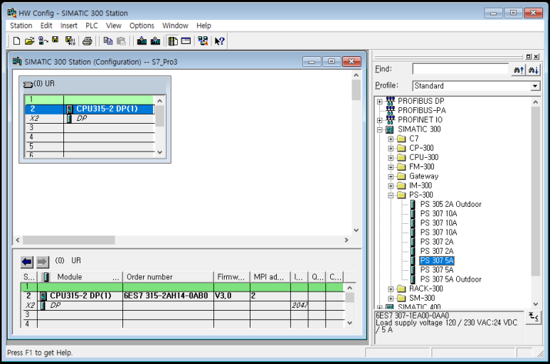 (CPU315-2DP는 우리가 새 프로젝트 마법사에서 CPU를 지정했기 때문에