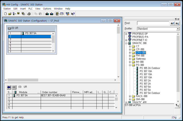 일단 300시리즈니까 SIMATIC300 하위 카테고리에서 PS-300을 열고