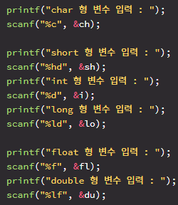 마지막으로 printf와 scanf의 문법적인 내용을 정리하자면