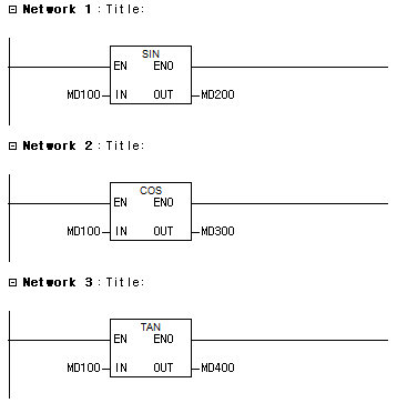 sin, cos, tan 값이 각각의 OUT단자의 Address에 저장됩니다.
