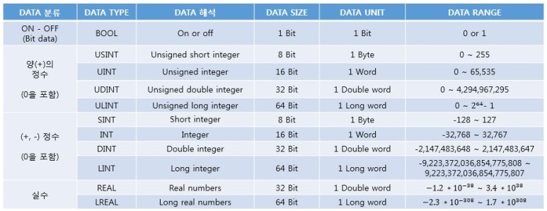 오늘은 이 데이터의 단위별로 PLC에서는 어떠한 데이터의 타입을 대입하여 사용 할 수 있는지 알아보겠습니다.