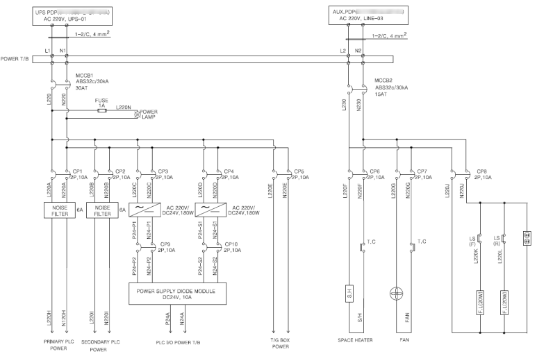 말단의 PLC Power Supply 및 도어램프, 콘센트까지