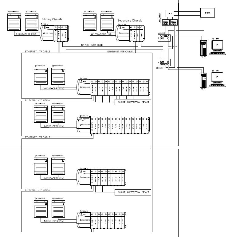 PLC 및 HMI등의 주변기기류들의 구성도를
