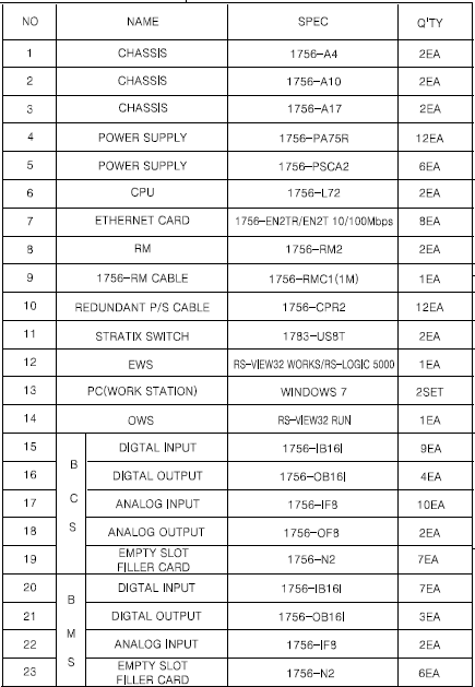 PLC의 경우 IO카드의 종류 및 수량도 나타내 주는 것이 좋고,