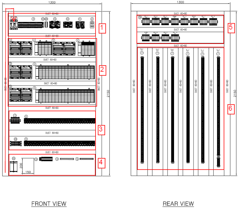 그리고 마지막으로 6번 구역에는 외부 인입 제어케이블용 터미널 단자대를 위치시킵니다.