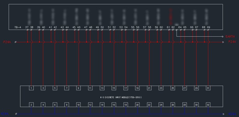 위 도면의 내용은 외부전원을 사용한 DI POINT 결선도면이며, 상부의 하얀색 박스부분이 PLC Panel에서 외부 인입케이블 결선 터미널단자를 의미합니다. P24가 외부 인입케이블 결선 터미널단자에 바로 연결되었고, N24가 PLC모듈로 바로 들어갔으니 이건 소스타입으로 결선을 한것이지요. 감이 잡히시나요?