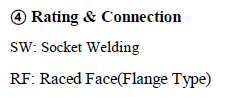 다음은 Rating과 Connection입니다. Rating은 Valve 허용 압력을 이야기 합니다. 그리고 시방서(기술규격서)에서 명시된 규격에 맞는 Rating으로 적어주어야 합니다. ANSI인지 JIS인지 ASME인지에 따라 조금씩 다르기 때문에 꼭 확인을 해야합니다. 그리고 배관의 허용압력을 따라가기 때문에 기계배관파트와 협의를 해야 하는 사항입니다. 그리고 Connection도 기계배관파트와 협의를 해야합니다. 어차피 이 Body부분의 스펙은 기계파트의 검토를 받아야 하는 사항이기 때문에 꼭 발주내기 전에 꼼꼼하게 확인 후 발주내시기 바랍니다.