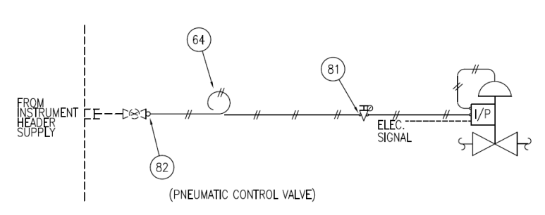 마지막으로Vavle에 대한 훅업 도면도 한번 알아보겠습니다. Valve body자체를 설치하는 것은 훅업도면에 표현할 필요가 없지만 Instrument Air의 연결등의 내용은 표현해 주어야 합니다.
