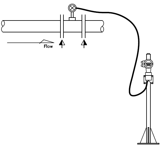 두번째는 초음파유량계입니다. 이번 초음파유량계의 경우 Remote Type으로 유량계 Sensor부분과 Converter 및 Display부분이 따로 떨어져 있는 모델입니다. 이럴경우 Converter와 Display부분은 벽부형으로 브라켓을 이용하여 설치를 하던가 아니면 Station을 하나 따로 사용해야 합니다. 그리고 차압식 유량계에서 언급했던것과 같이 설치에 관한 메이커 스탠다드 사항들을 기입해 주는 것이 좋습니다. 해당 내용은 메이커나 모델별로 상이하기 때문에 꼭 Manual을 확인하도록 합니다.