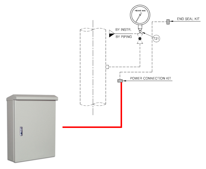 실제 Electric Heat Tracing System은 위와 같이 구성된다고 보시면 됩니다. Heat Tracing Cable의 시작단에는 Power Connection Kit(일명 파워킷)이 연결되어 있고, 끝단에는 End Seal Kit(일명 엔드킷)이 연결되어 있습니다. 우리는 이중에서 파워킷에 전원케이블을 연결시켜주면 됩니다. 그러면 파워킷에서 온도를 감시하다가 일정 온도 이하로 내려가면 전원을 도통시켜서 Heat Tracing Cable이 발열을 시작하게 됩니다. 간단하죠?