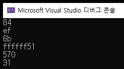 결과값은 주석으로 달아두었습니다. 먼저 위에서 변수 a에 대입한 0xAE는 16진수로 표현된 정수이므로 이를 2진법으로 바꾸어 표시하면 10101110이 됩니다. 이건 아제 다들 아시겠지요? 그래서 아까 위에서 배웠던것 처럼 비트연산을 하면 결과값은 주석으로 작성한것 처럼 나옵니다. 아 물론 실제로 결과를 출력해보면 아래와 같이 16진수로 표시됩니다.