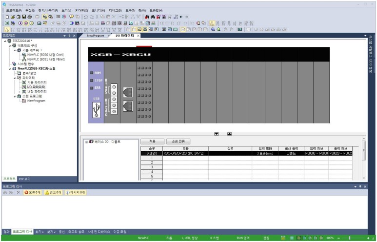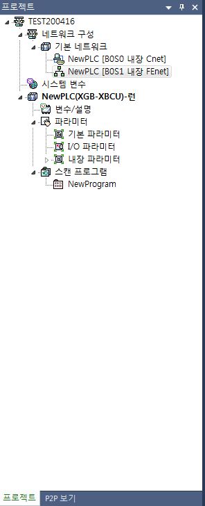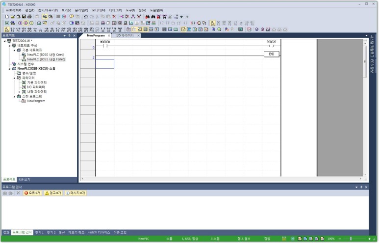 이제 왼쪽 프로젝트 창에서 NewPLC[B0S1 내장 FEnet]를 선택하고