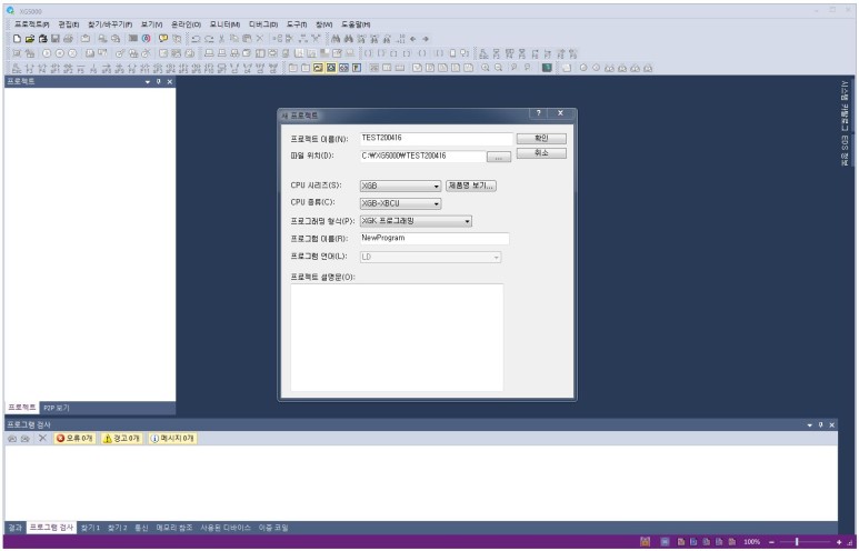 먼저 XG5000을 열고 새프로젝트를 만들어 봅니다.