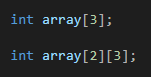 위에서 선언한 배열은 둘다 정수형 배열입니다. 다만 첫번째 배열은 1차원 배열이고, 두번째 배열이 2차원 배열입니다. 1차원 배열의 크기는 3으로 입력되어 있으니 원소가 3개라는 뜻이지요. 2차원 배열의 크기는 2x3이라고 생각하시면 됩니다. 즉 총 원소의 갯수가 6개가 됩니다.