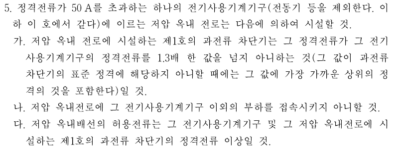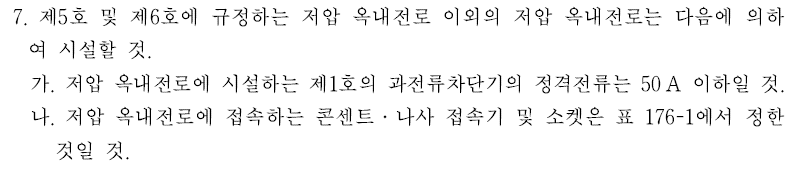 그리고 하나가 더 있죠. 전기설비기술기준의 판단기준 제176조(분기회로의 시설) 1항 5호와 7호 입니다.
