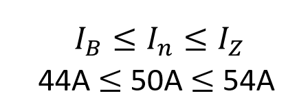 케이블의 허용전류가 과전류 차단기의 표준 정격에 해당할 때는 바로 그 과전류 차단기를 선정하고, 아닐시에는 그 값에 가장 가까운 상위 정격의 것으로 선정.