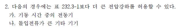 지금부터는 전동 부하인 경우에 한해서 사용하는 방법 입니다. 사실 KEC(한국전기설비기준)상으로만 보면 명확한 기준은 없습니다. 232.3.9 에 나와 있는 내용상으로 보면 아래와 같이만 명시되어 있기 때문입니다.