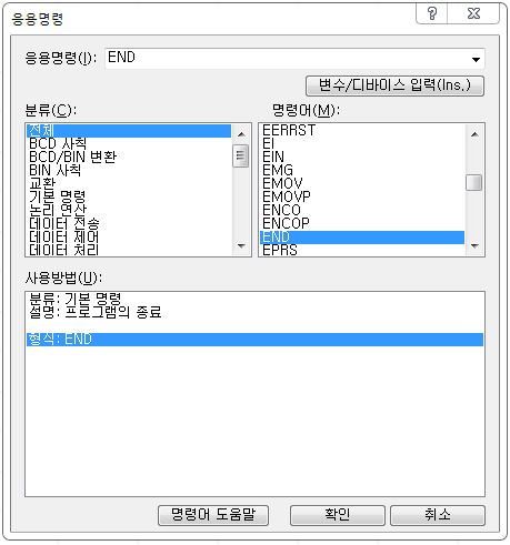 여기서 '응용명령(I) : ' 창에 'END'를 입력하시고 확인을 누르시면 됩니다.