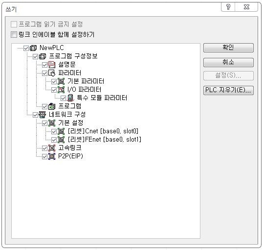 여기서 시뮬레이터에 쓰기 할 항목들을 고른뒤에 확인을 누르시면 프로그램이 PLC시뮬레이터로 들어가게 됩니다.