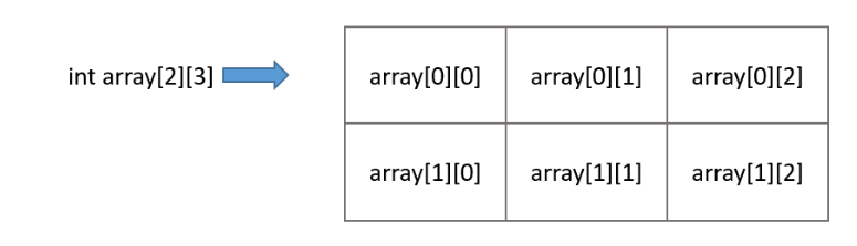 위와 같은 크기를 가진 배열은 총 6개의 원소를 가지게 되며 아래와 같이 존재합니다.