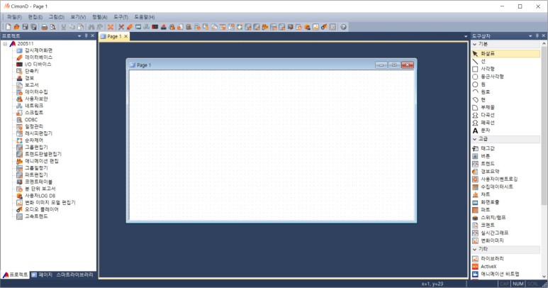 이제 CIMON의 기본 작화 및 사용법에 대해 알아보겠습니다. CIMON은 SCADA이지만 작화 및 사용법은 일반 HMI와 크게 다르지 않습니다. PLC도 한 기종을 배우면 다른 기종도 금방 습득할 수 있지만 HMI나