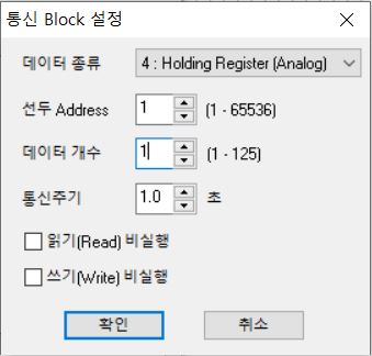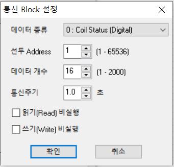 위 화면에서 [Block 추가] 버튼을 클릭해 보시면 아래와 같은 [통신 Block 추가] 창이 뜹니다.