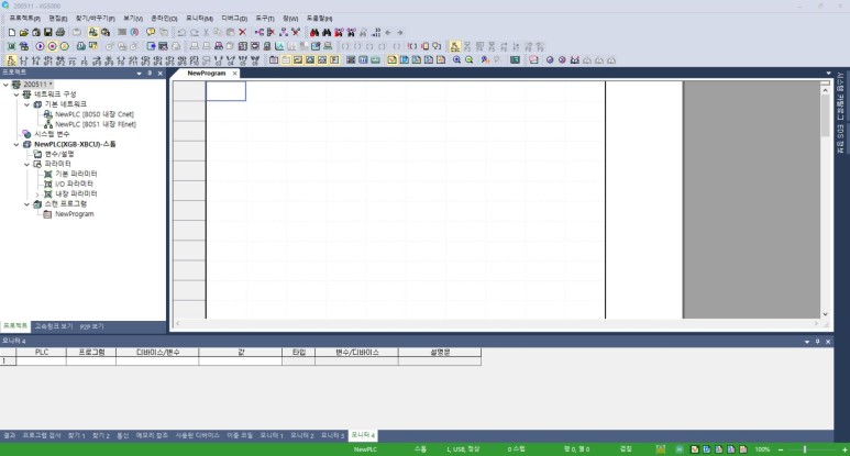 새 프로젝트를 생성하고 PLC와 연결하면 아래와 같은 화면을 볼 수 있습니다.