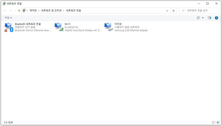 그럼 아래와 같은 유선네트워크 속성창을 열수 있고, 여기서