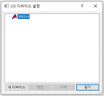 [도구] - [I/O디바이스] 를 실행하여 아래 I/O 디바이스 설정 페이지를 열도록 합니다.