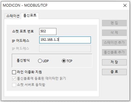 여기에 PLC의 IP 어드레스를 입력해야 합니다.