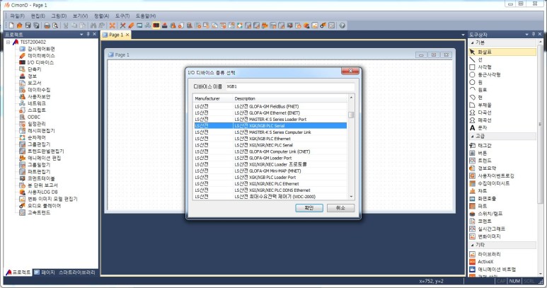 LS산전의 XGB PLC의 Serial통신이니 해당하는 내용을 찾아서 선택합니다.