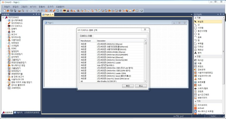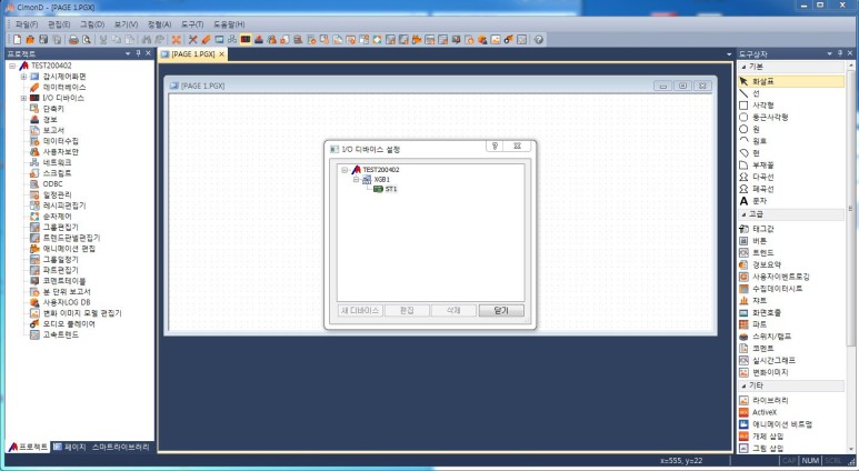 CIMON에서 PLC와의 통신설정을 하려면 IO 디바이스 설정으로 들어가야 합니다.