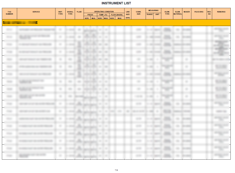 보통 대형설비일수록 작성하다보면 타INSTRUMENT와 중복되는 경우가 많아서