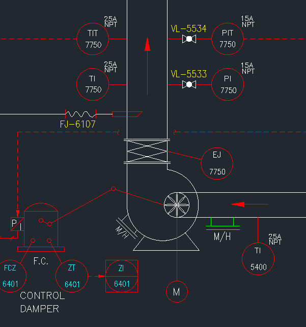 아래와 같이 P&ID 일부분을 예로 들어보겠습니다.