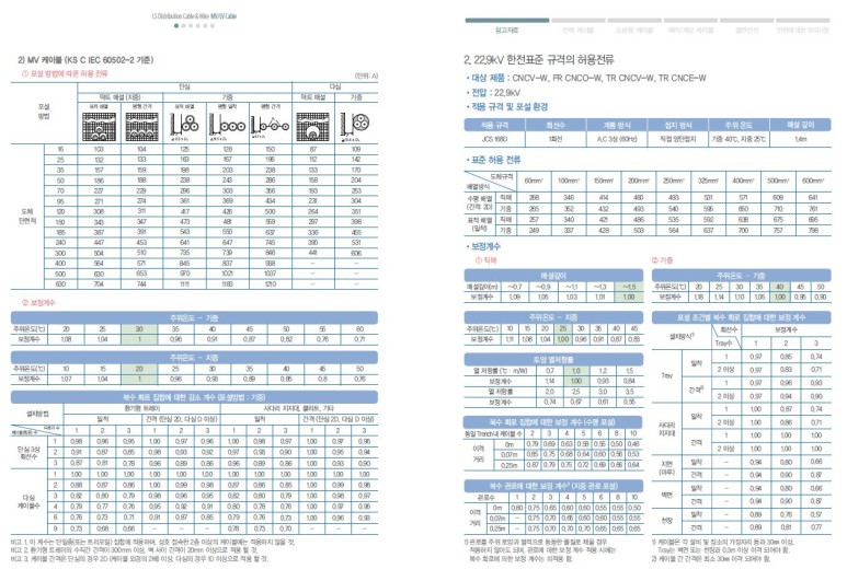 참고로 LS전선사의 전력케이블 카달로그에 나와 있는 정보는 아래와 같습니다.