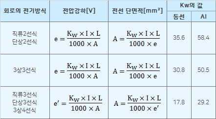 그리고 50A를 초과할 때는 전압변동만을 고려하여