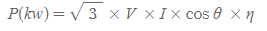 그리고 전압강하를 계산해 보면 히터와 마찬가지로 3상3선식이니까 식은 아래와 같이 됩니다.