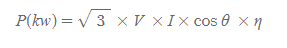 전력과 전압, 전류와의 관계는 아래 식과 같습니다.