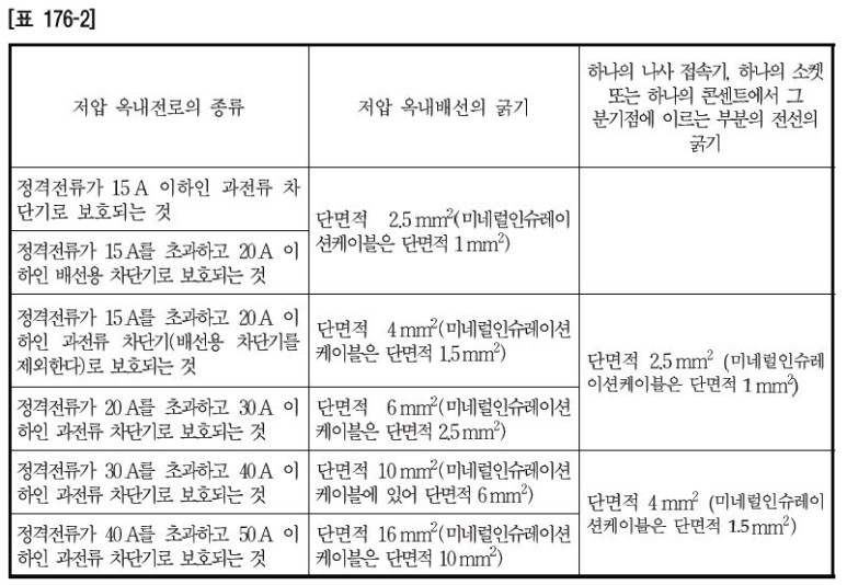 (단! 프로젝트 특성상 최소 굵기가 4sq부터 시작하는 프로젝트에서는 4sq를 사용해야 합니다. 각 프로젝트 별 시방서가 우선이 되기때문에 시방서를 꼼꼼히 체크하시기 바랍니다.)