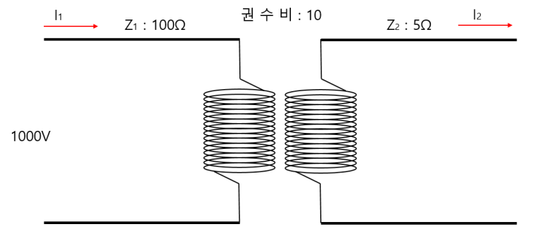 일단 권수비와 전압과 임피던스와의 상관관계는 아래와 같습니다.