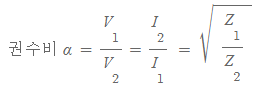 이것을 권수비와 임피던스의 관계만 따로 떨어뜨려 생각해보면
