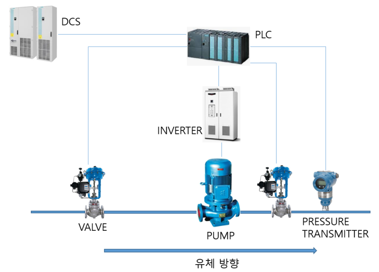 PUMP를 이용하여 물을 수송하는데, PRESSURE TRANSMITTER로 PUMP 토출구 쪽 압력을 측정하여