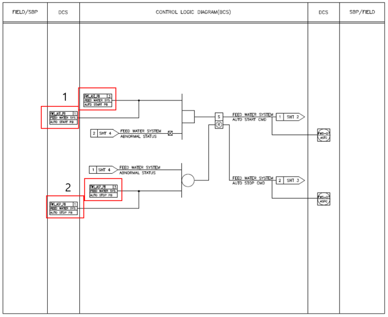 Sheet 1번에서 시작된 Feed water system auto start cmd로