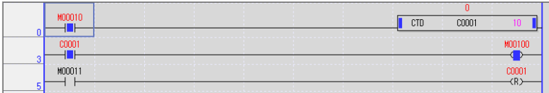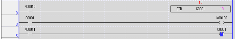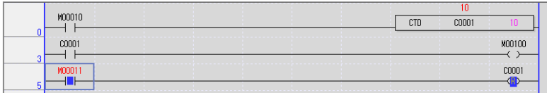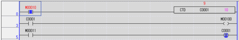 위 프로그램을 해석하자면 입력접점 M10이 On되면 다운카운터 C1의 현재값이 1씩 줄어들고