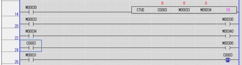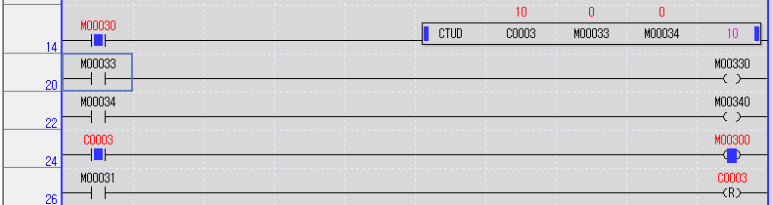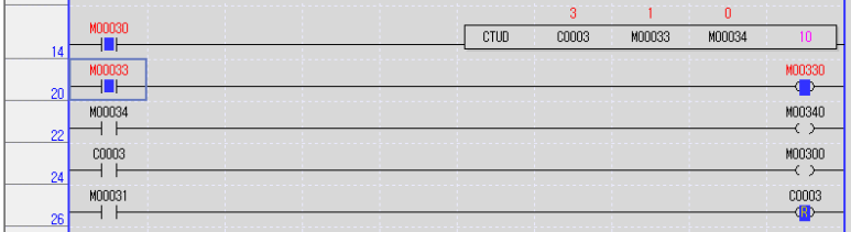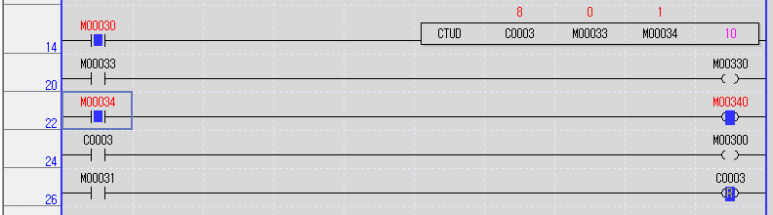 입력접점 M30을 On하여 Up-Down 카운터 C3를 활성화 한 상태로